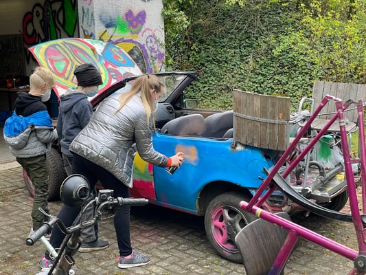 Ihr technisches Geschick und ihre Fantasie können die Schüler*innen der PrinzHöfte Schule beim Schweißprojekt "crazy vehicles"trainieren und ausleben.